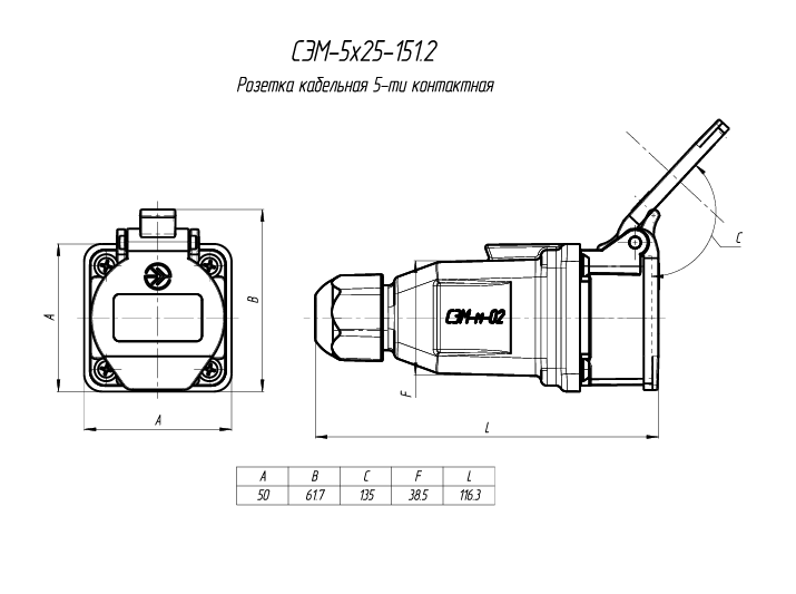 Розетка кабельная СЭМ-5х25-151.2