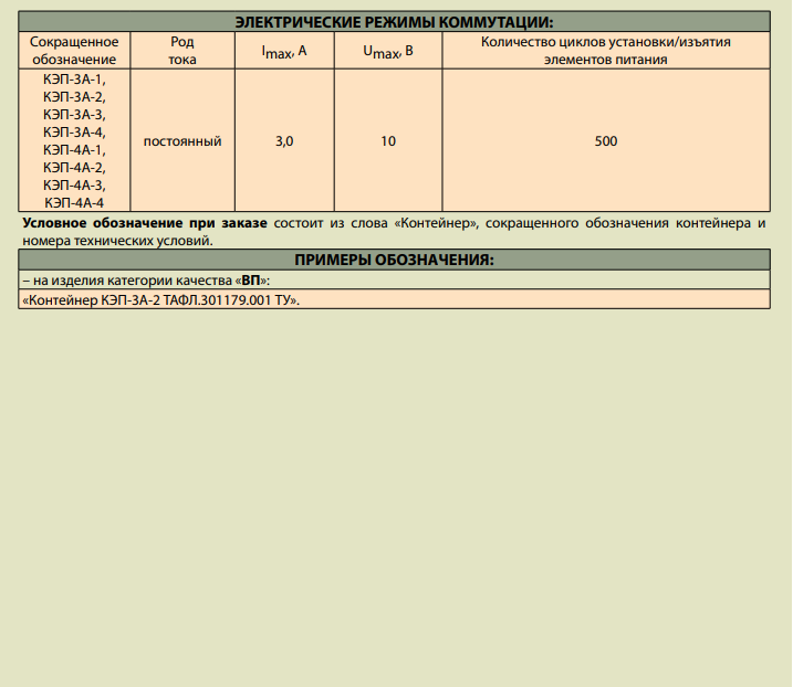 Электрический режим эксплуатации – до 10 В, до 3,0 А постоянного тока