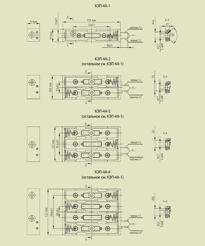 Контейнеры для установки элементов питания типа ААА и АААА в электрических цепях постоянного тока в радиоэлектронной аппаратуре.