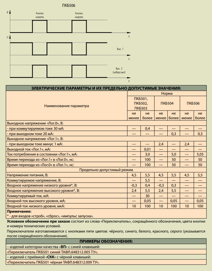 ПКБ502 представляет собой переключатель без световой индикации, с электронной фиксацией и стробированием.