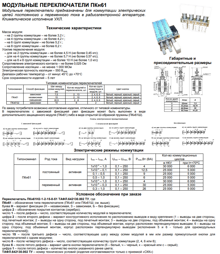 Модульные переключатели предназначены для коммутации электрических цепей постоянного и переменного тока в радиоэлектронной аппаратуре.