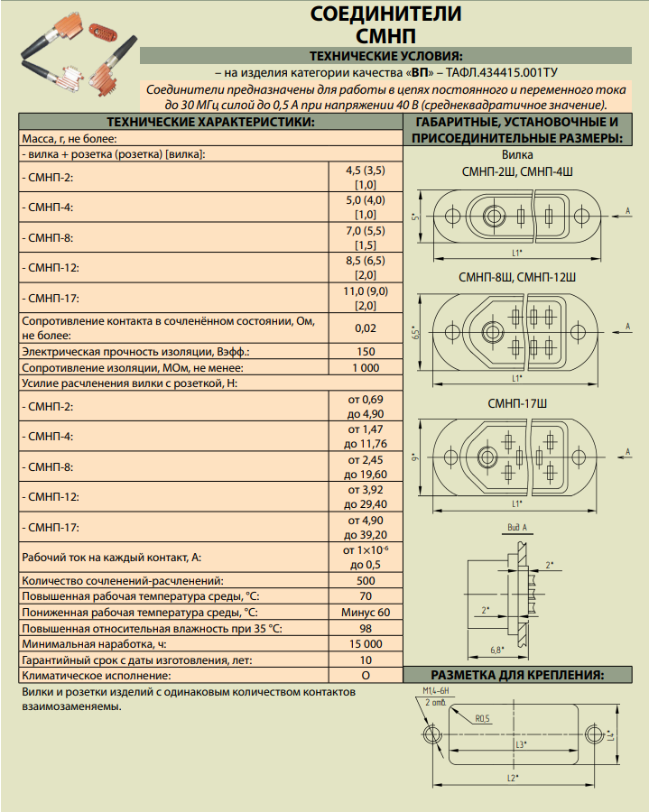 Соединители предназначены для работы в цепях постоянного и переменного тока до 30 МГц силой до 0,5 А при напряжении 40 В (среднеквадратичное значение).