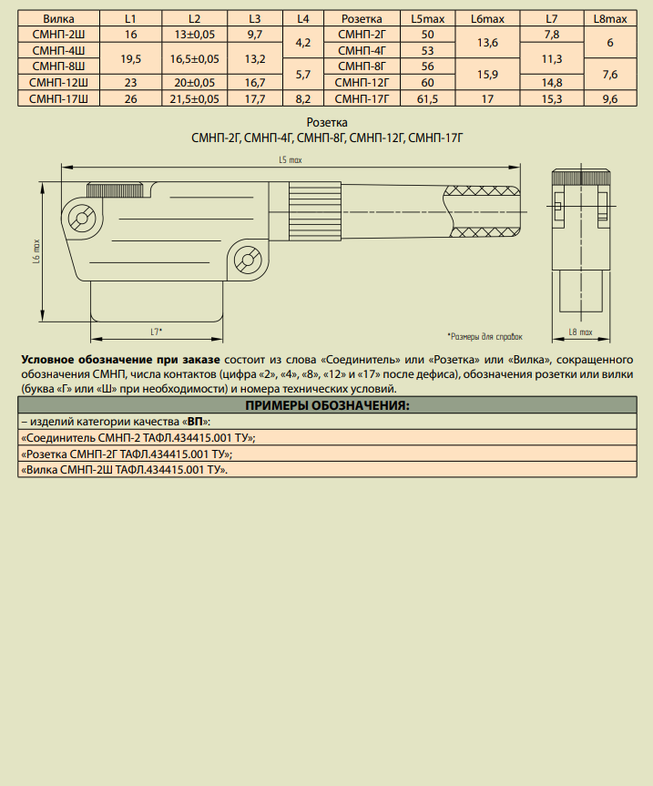 Условное обозначение: «Соединитель» или «Розетка» или «Вилка», сокращенное обозначения СМНП,
